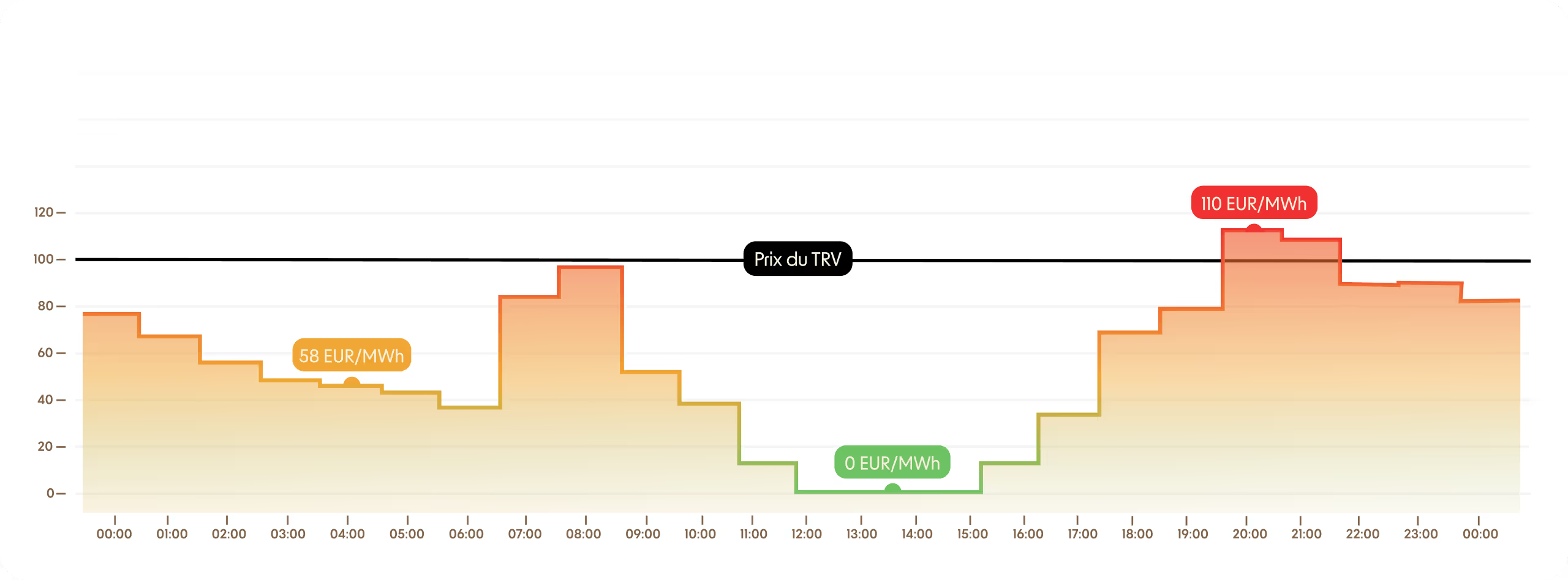 Visibilité totale : vous connaissez les prix de chaque heure du lendemain. Vous savez donc toujours à quel tarif vous consommez.